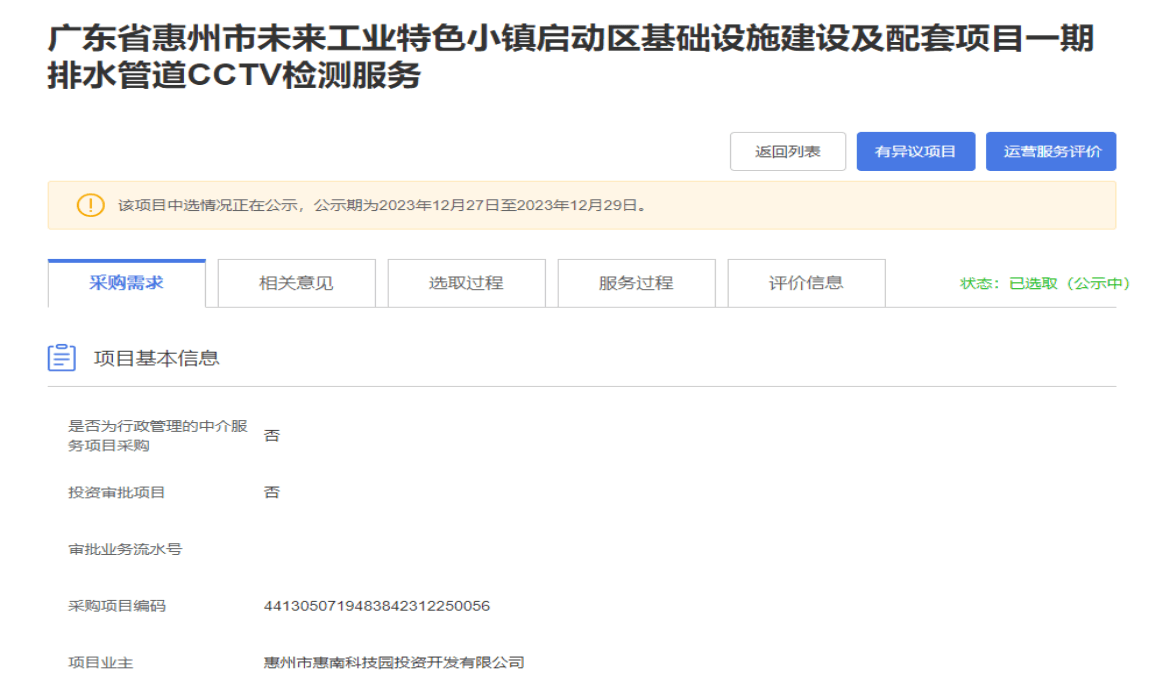 【招標公示】廣東省惠州市未來工業(yè)特色小鎮(zhèn)啟動區(qū)基礎(chǔ)設(shè)施建設(shè)及配套項目一期排水管道CCTV檢測服務(wù)
