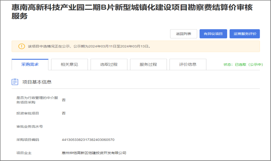 惠南高新科技產業(yè)園二期B片新型城鎮(zhèn)化建設項目勘察費結算價審核服務