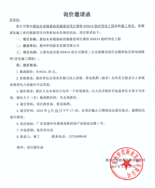 惠創(chuàng)未來城基礎(chǔ)設(shè)施建設(shè)項目增容800kVA臨時用電工程