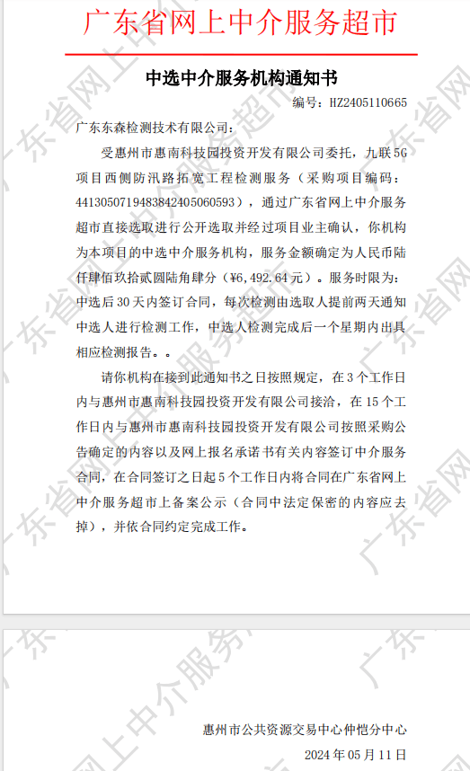 【中選公示】九聯(lián)5G項(xiàng)目西側(cè)防汛路拓寬工程檢測(cè)服務(wù)