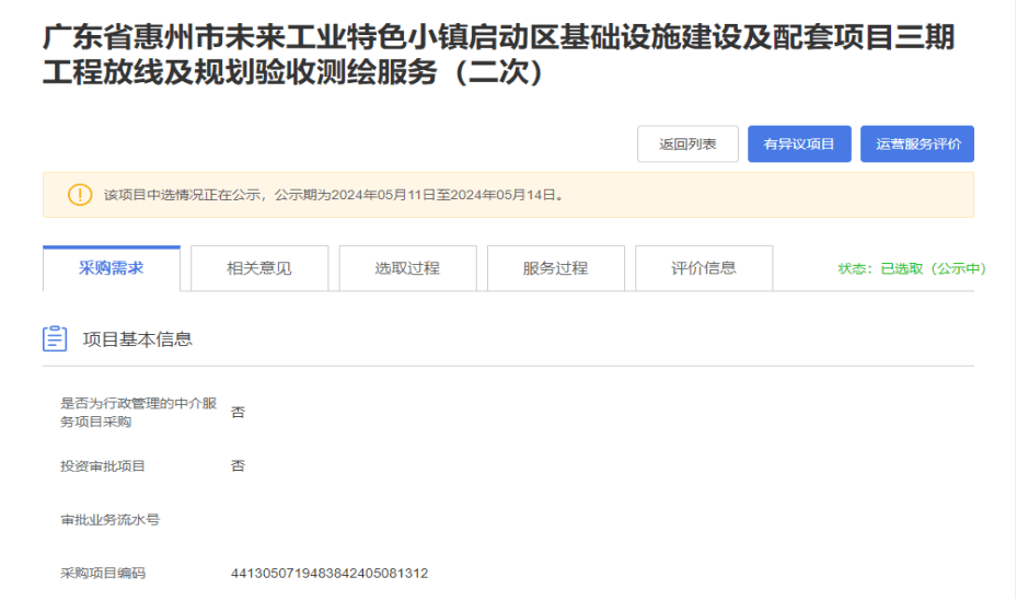 【公示】廣東省惠州市未來工業(yè)特色小鎮(zhèn)啟動區(qū)基礎設施建設及配套項目三期工程放線及規(guī)劃驗收測繪服務(二次)