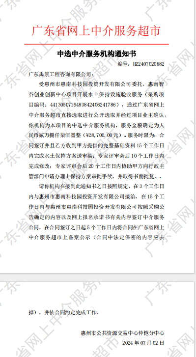 【中選通知】惠南智谷創(chuàng)業(yè)創(chuàng)新中心項(xiàng)目開展水土保持設(shè)施驗(yàn)收服務(wù)
