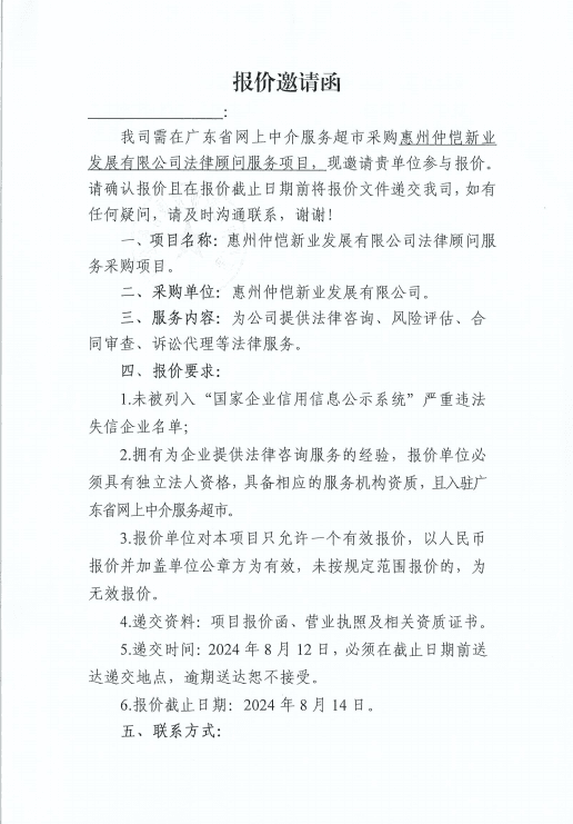 惠州仲愷新業(yè)發(fā)展有限公司法律顧問服務(wù)項目