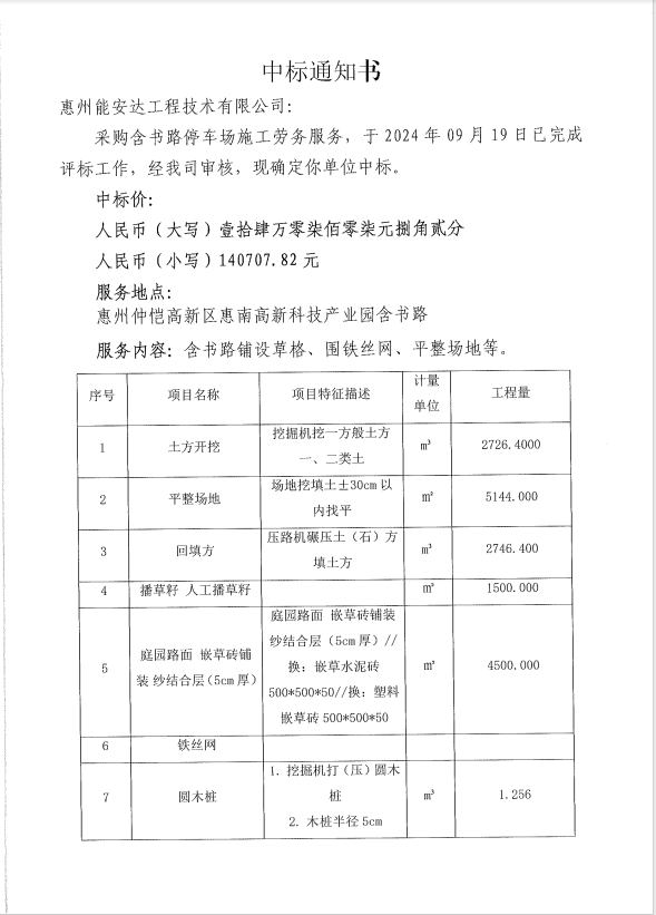 【中標(biāo)通知】采購(gòu)含書(shū)路停車(chē)場(chǎng)施工勞務(wù)服務(wù)