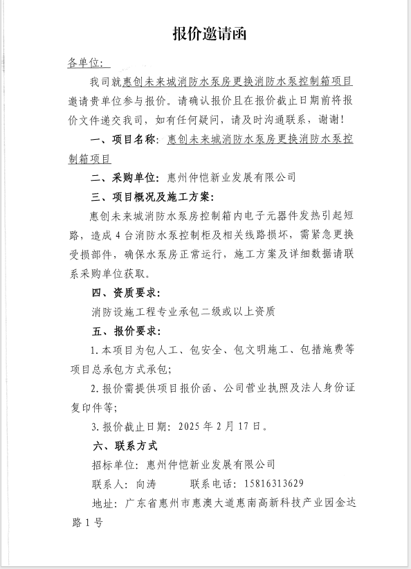惠創(chuàng)未來城消防水泵房更換消防水泵控制箱項(xiàng)目