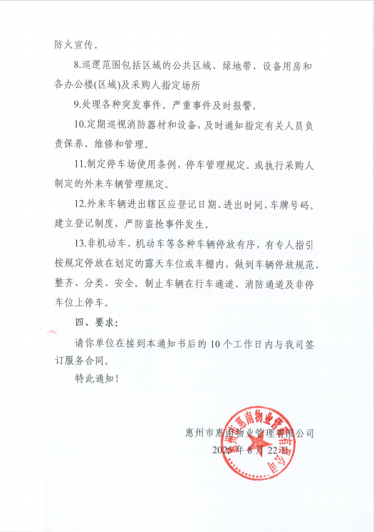 【中標通知】采購惠南科技園工人文化宮安保服務項目