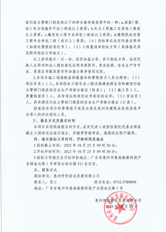 【招標(biāo)公告】惠創(chuàng)未來城7400kVA配電工程